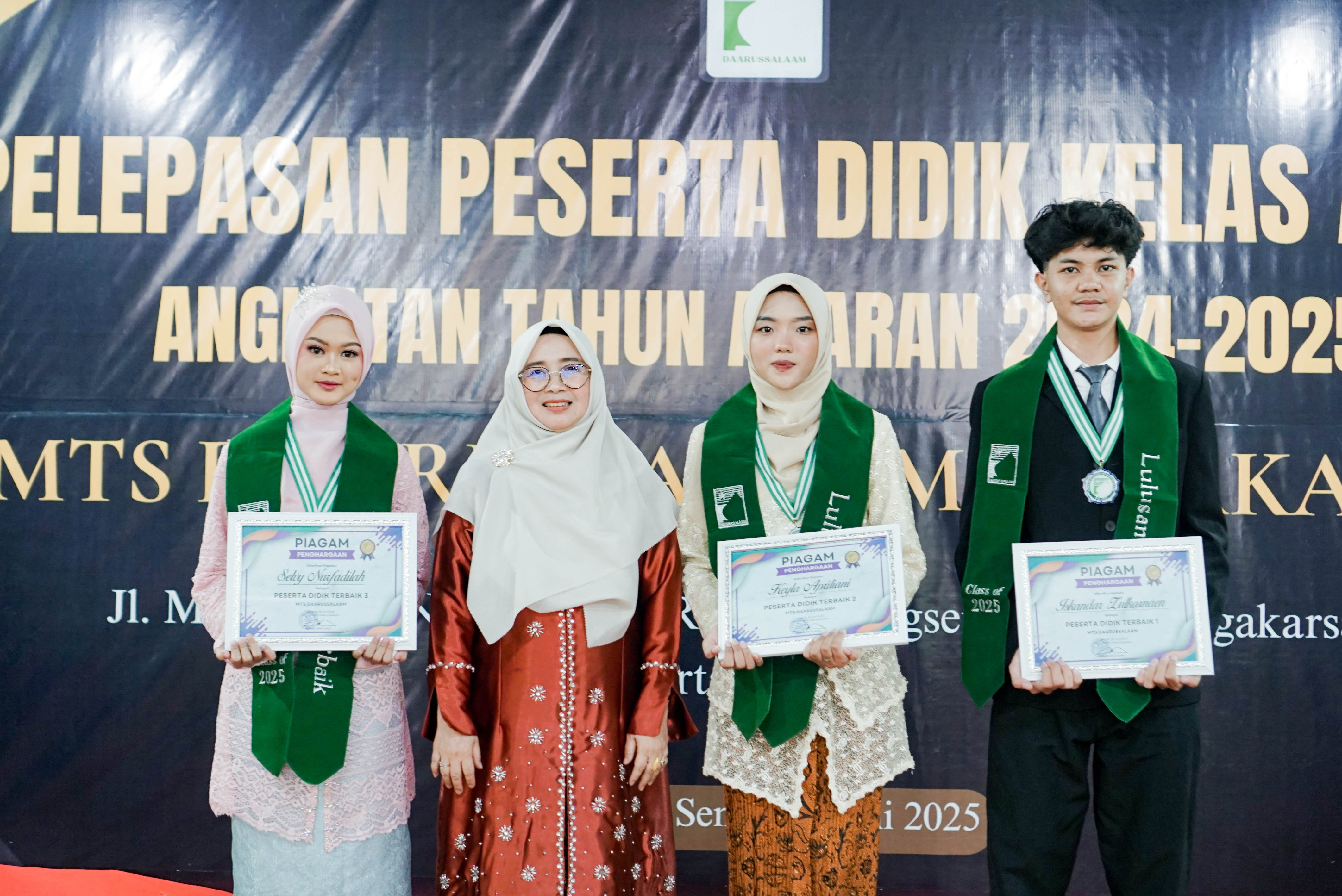 MTs Daarussalaam adalah lembaga pendidikan setara sekolah menengah pertama yang memadukan pelajaran umum dengan pembelajaran agama seperti Fiqh, Aqidah Akhlak, serta Al-Qur’an Hadits. Melalui pendampingan guru yang kompeten, pembiasaan ibadah seperti sholat dhuha dan membaca Al-Qur’an, serta lingkungan belajar yang terarah, MTs Daarussalaam membantu peserta didik memasuki masa remaja dengan bekal ilmu dasar, pemahaman nilai-nilai agama, dan kedisiplinan dalam berperilaku.